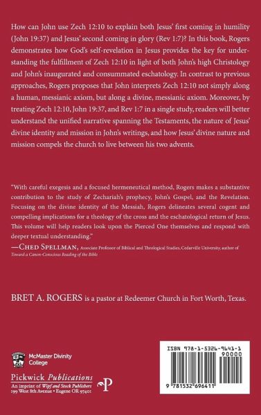 How can John use Zech 12:10 to explain both Jesus' first coming in humility (John 19:37) and Jesus' second coming in glory (Rev 1:7)? In this book, Rogers demonstrates how God's self-revelation in Jesus provides the key for understanding the fulfillment of Zech 12:10 in light of both John's high Christology and John's inaugurated and consummated eschatology. In contrast to previous approaches, Rogers proposes that John interprets Zech 12:10 not simply along a human, messianic axiom, but along a divine, messianic axiom. Moreover, by treating Zech 12:10, John 19:37, and Rev 1:7 in a single study, readers will better understand the unified narrative spanning the Testaments, the nature of Jesus' divine identity and mission in John's writings, and how Jesus' divine nature and mission compels the church to live between his two advents.