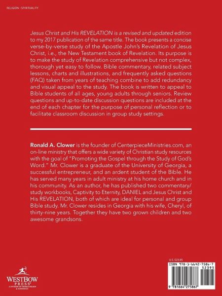 Jesus Christ and His REVELATION is a revised and updated edition to my 2017 publication of the same title. The book presents a concise verse-by-verse study of the Apostle John's Revelation of Jesus Christ, i.e., the New Testament book of Revelation. Its purpose is to make the study of Revelation comprehensive but not complex, thorough yet easy to follow. Bible commentary, related subject lessons, charts and illustrations, and frequently asked questions (FAQ) taken from years of teaching combine to add redundancy and visual appeal to the study. The book is written to appeal to Bible students of all ages, young adults through seniors. Review questions and up-to-date discussion questions are included at the end of each chapter for the purpose of personal reflection or to facilitate classroom discussion in group study settings.