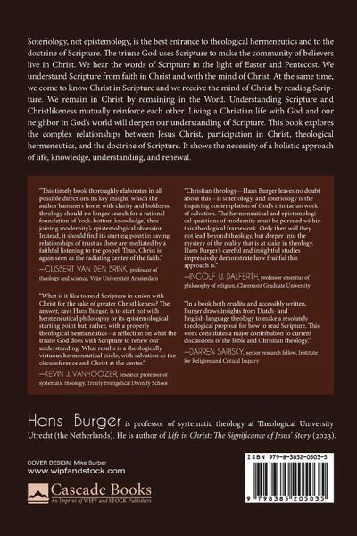 Soteriology, not epistemology, is the best entrance to theological hermeneutics and to the doctrine of Scripture. The triune God uses Scripture to make the community of believers live in Christ. We hear the words of Scripture in the light of Easter and Pentecost. We understand Scripture from faith in Christ and with the mind of Christ. At the same time, we come to know Christ in Scripture and we receive the mind of Christ by reading Scripture. We remain in Christ by remaining in the Word. Understanding Scripture and Christlikeness mutually reinforce each other. Living a Christian life with God and our neighbor in God's world will deepen our understanding of Scripture. This book explores the complex relationships between Jesus Christ, participation in Christ, theological hermeneutics, and the doctrine of Scripture. It shows the necessity of a holistic approach of life, knowledge, understanding, and renewal.