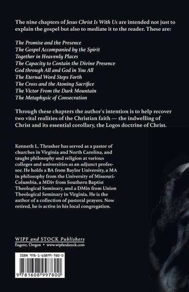 The nine chapters of Jesus Christ Is With Us are intended not just to explain the gospel but also to mediate it to the reader. These are: The Promise and the Presence The Gospel Accompanied by the Spirit Together in Heavenly Places The Capacity to Contain the Divine Presence God through All and God in You All The Eternal Word Steps Forth The Cross and the Atoning Sacrifice The Victor From the Dark Mountain The Metaphysic of Consecration Through these chapters the author's intention is to help recover two vital realities of the Christian faith -- the indwelling of Christ and its essential corollary, the Logos doctrine of Christ.