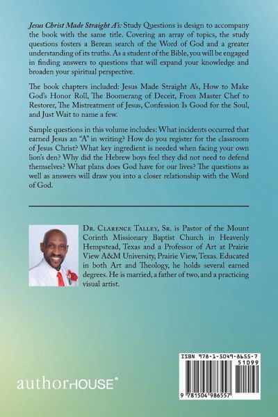 Jesus Christ Made Straight A's: Study Questions is design to accompany the book with the same title. Covering an array of topics, the study questions fosters a Berean search of the Word of God and a greater understanding of its truths. As a student of the Bible, you will be engaged in finding answers to questions that will expand your knowledge and broaden your spiritual perspective. The book chapters included: Jesus Made Straight A's, How to Make God's Honor Roll, The Boomerang of Deceit, From Master Chef to Restorer, The Mistreatment of Jesus, Confession Is Good for the Soul, and Just Wait to name a few. Sample questions in this volume includes: What incidents occurred that earned Jesus an "A" in writing? How do you register for the classroom of Jesus Christ? What key ingredient is needed when facing your own lion's den? Why did the Hebrew boys feel they did not need to defend themselves? What plans does God have for our lives? The questions as well as answers will draw you into a closer relationship with the Word of God.