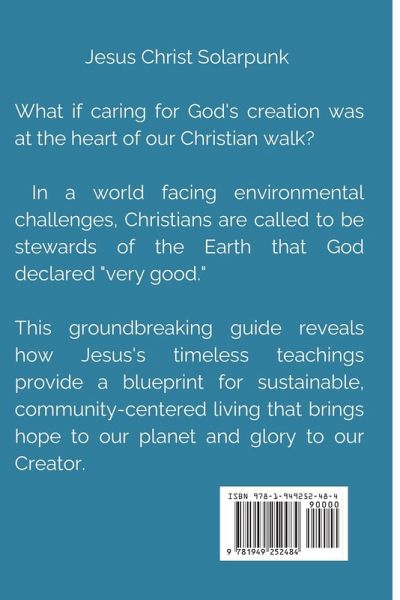 Jesus Christ Solarpunk An Eco-Friendly Guide to Life What if caring for God's creation was at the heart of our Christian walk? In a world facing environmental challenges, Christians are called to be stewards of the Earth that God declared "very good." This groundbreaking guide reveals how Jesus's timeless teachings provide a blueprint for sustainable, community-centered living that brings hope to our planet and glory to our Creator. Inside these pages, you'll discover:Biblical foundations for environmental stewardship and clean energy How the Trinity's perfect harmony reflects sustainable systems Practical ways families can live out "love thy neighbor" through sharing and cooperation Jesus-inspired approaches to gardening, resource conservation, and community building How to help teens connect their faith with creation care Perfect for family devotions, youth groups, or personal growth, this guide bridges Scripture with actionable steps for Christian families seeking to honor God through their environmental choices. "A refreshing, scripture-based approach that empowers Christian families to care for God's creation while strengthening their faith. This book transformed how our family lives out the Gospel." - Pastor James Wilson, Green Faith Community Church. Embrace a faith-filled vision of a greener, more connected world-just as God intended.