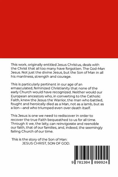This work, originally entitled Jesus Christus, deals with the Christ that all too many have forgotten. The God-Man Jesus. Not just the divine Jesus, but the Son of Man in all his manliness, strength and courage. This is particularly pertinent in our age of an emasculated, feminized Christianity that none of the early Church would have recognized. Neither would our European ancestors who, in converting to the Catholic Faith, knew the Jesus the Warrior, the man who battled, fought and heroically died as a Man, not as a lamb, but as a lion-and who triumped even over death itself. This Jesus is one we need to rediscover in order to recover the true Faith bequeathed to us for all time. Through it we, the laity, can reinvigorate and reenoble our faith, that of our families, and, indeed, the seemingly failing Church of our time. This is the story of the Son of Man: JESUS CHRIST, SON OF GOD.