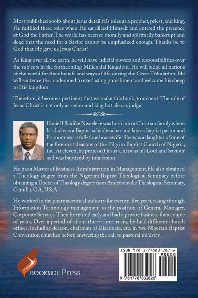 Most published books about Jesus detail His roles as a prophet, priest, and king. He fulfilled these roles when He sacrificed Himself and entered the presence of God the Father. The world has been so morally and spiritually bankrupt and dead that the need for a Savior cannot be emphasized enough. Thanks be to God that He gave us Jesus Christ! As King over all the earth, he will have judicial powers and responsibilities over the subjects in the forthcoming Millennial Kingdom. He will judge all nations of the world for their beliefs and ways of life during the Great Tribulation. He will sentence the condemned to everlasting punishment and welcome his sheep to His kingdom. Therefore, it becomes pertinent that we make this book prominent. The role of Jesus Christ is not only as savior and king but also as judge.
