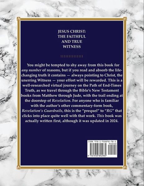 The Truth has the unmatched power to see through and defeat every lie, shaded truth, and misdirection of humanity. In life, truth stands on its own when all of the facts have been presented because, ultimately, the truth always traces its origin to the Source of all truth: the eternal, omniscient, and holy triune God described in the Bible. The second person of the Trinity, Jesus Christ, is indeed The Way, the Life, and THE Truth, according to John 14:6. Everything in God's Word confirms that claim, and nothing contradicts it. If this absolutely unique Divine Person -- the God-man -- embodies the truth to the extent that He can rightly be called THE Truth, we have before our eyes the most-reliable source of truth, the whole truth, and nothing but the truth. As eternal, holy God Himself (John 1:1-3, Colossians 1:15-17, Hebrews 1:1-2), and because God can NOT lie (Titus 1:2), Jesus Christ is the most-faithful witness to the truth that there ever could be. Why should we rely on the ignorance, incomplete knowledge (at best), and lies of sinful, finite creatures? Only those men who spoke and recorded the Holy-Spirit-inspired words of the books of the Bible were given God's stamp of approval and seal of certification that their words matched and proceeded from God. So in addition to the Lord Jesus Christ Himself, we can add to the number of truly faithful witnesses those select few who were genuinely inspired by the Holy Spirit to be the "stenographers" of The Scriptures. But that's where we must draw the line, because diligent truth-seekers have nothing to gain by going beyond that boundary. The reality is that anyone can make predictions about the future and not one person in our earthly realm actually knows what will happen or when. That's the dividing line between knowing the future (and the past as well) and engaging in guesswork about it. The truth descends to us from God's eternal throne, and by His grace, we finite human beings can come upon even the most astonishing facts of creation (as He wills). On the other side of the divide, we humans of limited understanding and imagination will soon hit our largely self-imposed ceiling; pride keeps us from going to God for the knowledge that can break through the barriers. For far too many, if something must come from God, we don't want it. Man by nature rejects God's provision, whether that pertains to things needed to live in safety and prosperity on earth, or far worse, the ultimate provision of The Way to eternal Life in the person and work of The Savior, Jesus Christ. To the Christ-rejecter, the worst offense of all is a life of holiness. The Christ-follower, then, is the natural enemy of the unbeliever, and the only one within reach of their hatred. If this doesn't fully explain their hatred toward Christians (because of Jesus, who lived the ONLY perfectly holy life), it can certainly cover the main ground. However, to reciprocate with hate is not God's way, so let's get back to the duties of the Christian: to acknowledge, trust in, and follow Jesus Christ, The Way to the Father in Heaven. The title of this book clearly proclaims a specific Person as the Faithful and True Witness: Jesus Christ, the God-man. That descriptive phrase is taken from Revelation 3:14, but there is actually another word that precedes it: "These things says The AMEN, the Faithful and True Witness." On page 9 of this work can be found a short treatment of the connection between the Bible's use of "Amen" in the Old Testament and "Faithful" in the New Testament. The conclusion is intuitive and firm: Both terms in their essence indicate "Yes, yes, it is (or will be) so" and "Absolutely, it's a done deal!" in the expressions of two different times. If God says what will happen and when, the occurrence will unfailingly verify the prophecy! Amen!