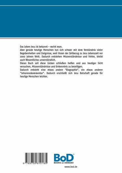 Das Leben Jesu ist bekannt - meint man. Aber gerade heutige Menschen tun sich schwer mit dem Verständnis vieler Begebenheiten und Ereignisse, weil ihnen der Zeitbezug zu Jesu Lebenszeit vor 2000 Jahren fehlt. Dadurch entstehen Missverständnisse und Fehler, bleibt auch Wesentliches unverständlich. Dieses Buch soll diese Lücken schließen helfen und aus heutiger Sicht versuchen, Missverständnisse und Unkenntnis zu beseitigen. Dadurch entsteht eine etwas andere "Biographie", ein etwas anderer "Johanneskommentar". Dadurch erschließt sich Jesu Botschaft gerade für heutige Menschen leichter.