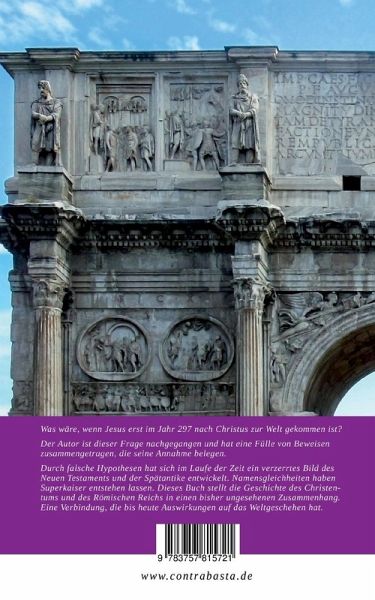 Was wäre, wenn Jesus erst im Jahr 297 nach Christus zur Welt gekommen ist?Der Autor ist dieser Frage nachgegangen und hat eine Fülle von Beweisen zusammengetragen, die seine Annahme belegen. Durch falsche Hypothesen hat sich im Laufe der Zeit ein verzerrtes Bild des Neuen Testaments und der Spätantike entwickelt. Namensgleichheiten haben Superkaiser entstehen lassen. Dieses Buch stellt die Geschichte des Christentums und des Römischen Reichs in einen bisher ungesehenen Zusammenhang. Eine Verbindung, die bis heute Auswirkungen auf das Weltgeschehen hat.