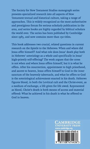 Examines Hebrews' exposition of Jesus' death, his self-offering in heaven at his ascension, and the link between them.
