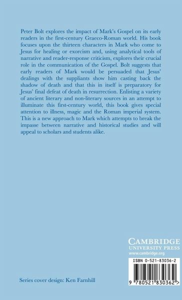 Peter Bolt explores the impact of Mark's Gospel on its early readers in the first-century Graeco-Roman world. His book focuses upon the thirteen characters in Mark who come to Jesus for healing or exorcism and, using analytical tools of narrative and reader-response criticism, explores their crucial role in the communication of the Gospel. Bolt suggests that early readers of Mark would be persuaded that Jesus' dealings with the suppliants show him casting back the shadow of death and that this in itself is preparatory for Jesus' final defeat of death in resurrection. Enlisting a variety of ancient literary and non-literary sources in an attempt to illuminate this first-century world, this book gives special attention to illness, magic and the Roman imperial system. This is a new approach to Mark which attempts to break the impasse between narrative and historical studies and will appeal to scholars and students alike.