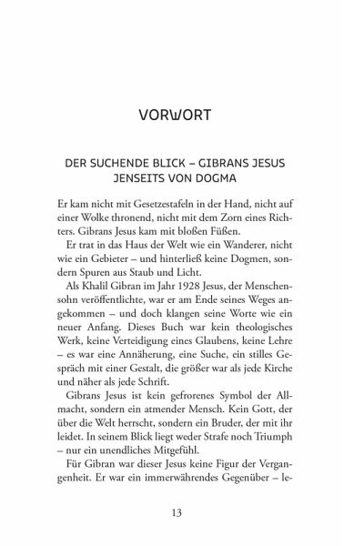 Ein poetisches Evangelium der Menschlichkeit In diesem außergewöhnlichen Werk lässt Khalil Gibran Jesus von Nazareth nicht durch Wunder wirken, sondern durch Nähe. Kein Dogma, keine Lehre - stattdessen 77 Stimmen, die von Jesus sprechen: Freunde und Fremde, Liebende und Zweifler, Gerechte und Gescheiterte. Gibrans Jesus ist weder entrückt noch unnahbar - er ist Mensch unter Menschen, Licht im Staub, Liebe inmitten der Welt. Jede Figur zeichnet ein anderes Bild, jede Erinnerung öffnet ein neues Fenster zum Herzen des Menschensohns. Voller sprachlicher Schönheit und spiritueller Tiefe, die ihn weltberühmt machten, erschafft Gibran ein bewegendes Mosaik über den, der war, der ist - und der in uns weiterlebt. Ein stilles Meisterwerk. Ein Evangelium für Suchende. Ein Jesus, der berührt - weil er uns ähnelt.
