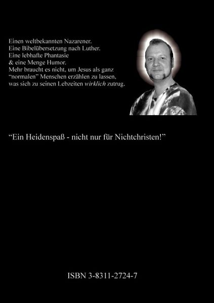 Jesus wird, weil aufmüpfig gegen seinen Vater aus dem Himmel verbannt - ins Exil - auf die Erde - mit Gedächtnisschwund - zumindest seiner Herkunft betreffend. Wegen seiner Holzallergie beendet er die Tischlerlehre nach dem ersten Tag und beschließt, Prophet zu werden - da es sich dabei um einen Beruf mit Zukunft und Gegenwart handelt: Jesus kann machen was er will, wird aber als Demagoge verehrt - wider Willen. Kein abnormes und widersprüchliches Verhalten der menschlichen Spezies ist ihm fremd - er lebt extrovertiert. Er läßt sogar seine Kreuzigung planen... Eine völlig neue Sichtweise des Heilands offenbart sich dem Leser. Frei nach Luther wird Jesus¿ Leben in ein neues Licht gerückt. "Wer nicht gegen uns ist, ist für uns" - Markus 9, Vers 14). Nicht nur wegen der angegebenen Bibelstellen ein Heidenspaß!