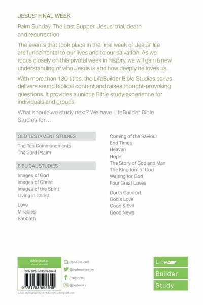 The events that took place in Jesus' final week of life - Palm Sunday, the Last Supper, the trial, Jesus' death and his resurrection - are foundational to our Christian lives and to our salvation. Focusing on these events day by day brings new understanding to who Jesus is and how he loves us.
