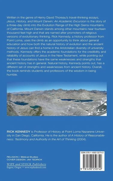 Written in the genre of Henry David Thoreau's travel-thinking essays, Jesus, History, and Mount Darwin: An Academic Excursion is the story of a three-day climb into the Evolution Range of the High Sierra mountains of California. Mount Darwin stands among other mountains near fourteen thousand feet high and that are named after promoters of religious versions of evolutionary thinking. Rick Kennedy, a history professor from Point Loma, uses the climb as an opportunity to think about general education and how both the natural history of evolution and the ancient history of Jesus can find a home in the Aristotelian diversity of university methods. Kennedy offers the academic foundations for the credibility and reliability of accounts of Jesus in the New Testament, while pointing out that these foundations have the same weaknesses and strengths that ancient history has in general. Natural history, Kennedy points out, has a different set of strengths and weaknesses from ancient history. Overall, the book reminds students and professors of the wisdom in being humble.