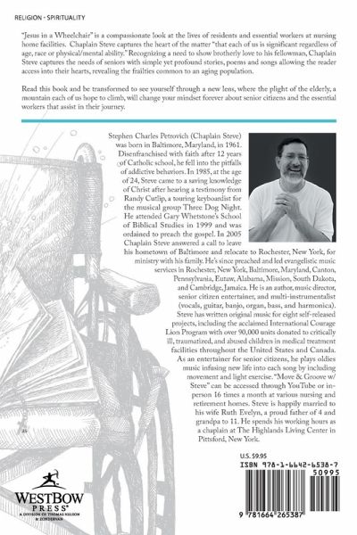 "Jesus in a Wheelchair" is a compassionate look at the lives of residents and essential workers at nursing home facilities. Chaplain Steve captures the heart of the matter "that each of us is significant regardless of age, race or physical/mental ability." Recognizing a need to show brotherly love to his fellowman, Chaplain Steve captures the needs of seniors with simple yet profound stories, poems and songs allowing the reader access into their hearts, revealing the frailties common to an aging population. Read this book and be transformed to see yourself through a new lens, where the plight of the elderly, a mountain each of us hope to climb, will change your mindset forever about senior citizens and the essential workers that assist in their journey.