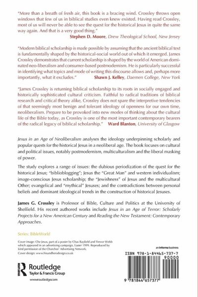 'Jesus in an Age of Neoliberalism' analyses the ideology underpinning contemporary scholarly and popular quests for the historical Jesus. Focusing on cultural and political issues, the book examines postmodernism, multiculturalism and the liberal masking of power. The study ranges across diverse topics: the dubious periodisation of the quest for the historical Jesus; 'biblioblogging'; Jesus the 'Great Man' and western individualism; image-conscious Jesus scholarship; the 'Jewishness' of Jesus and the multicultural Other; evangelical and 'mythical' Jesuses; and the contradictions between personal beliefs and dominant ideological trends in the construction of historical Jesuses. 'Jesus in an Age of Neoliberalism' offers readers a radical revisioning of contemporary biblical studies.