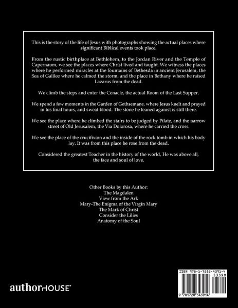 This is the story of the life of Jesus with photographs showing the actual places where significant Biblical events took place. From the rustic birthplace at Bethlehem, to the Jordan River and the Temple of Capernaum, we see the places where Christ lived and taught. We witness the places where he performed miracles at the fountains of Bethesda in ancient Jerusalem, the Sea of Galilee where he calmed the storm, and the place in Bethany where he raised Lazarus from the dead. We climb the steps and enter the Cenacle, the actual Room of the Last Supper. We spend a few moments in the Garden of Gethsemane, where Jesus knelt and prayed in his final hours, and sweat blood. The stone he leaned against is still there. We see the place where he climbed the stairs to be judged by Pilate, and the narrow street of Old Jerusalem, the Via Dolorosa, where he carried the cross. We see the place of the crucifixion and the inside of the rock tomb in which his body lay. It was from this place he rose from the dead. Considered the greatest Teacher in the history of the world, He was above all, the face and soul of love.