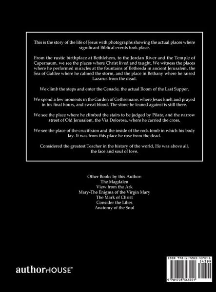 This is the story of the life of Jesus with photographs showing the actual places where significant Biblical events took place. From the rustic birthplace at Bethlehem, to the Jordan River and the Temple of Capernaum, we see the places where Christ lived and taught. We witness the places where he performed miracles at the fountains of Bethesda in ancient Jerusalem, the Sea of Galilee where he calmed the storm, and the place in Bethany where he raised Lazarus from the dead. We climb the steps and enter the Cenacle, the actual Room of the Last Supper. We spend a few moments in the Garden of Gethsemane, where Jesus knelt and prayed in his final hours, and sweat blood. The stone he leaned against is still there. We see the place where he climbed the stairs to be judged by Pilate, and the narrow street of Old Jerusalem, the Via Dolorosa, where he carried the cross. We see the place of the crucifixion and the inside of the rock tomb in which his body lay. It was from this place he rose from the dead. Considered the greatest Teacher in the history of the world, He was above all, the face and soul of love.