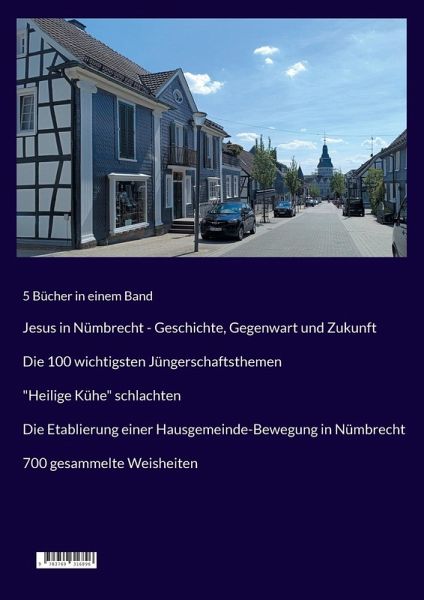 5 Bücher in einem Band: - Jesus in Nümbrecht - Geschichte, Gegenwart und Zukunft - Die 100 wichtigsten Jüngerschaftsthemen - "Heilige Kühe" schlachten - Die Etablierung einer Hausgemeinde-Bewegung in Nümbrecht - 700 gesammelte Weisheiten.