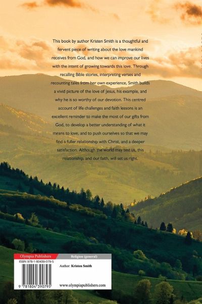 This book by author Kristen Smith is a thoughtful and fervent piece of writing about the love mankind receives from God, and how we can improve our lives with the intent of growing towards this love. Through recalling Bible stories, interpreting verses and recounting tales from her own experience, Smith builds a vivid picture of the love of Jesus, his example, and why he is so worthy of our devotion. This centred account of life challenges and faith lessons is an excellent reminder to make the most of our gifts from God, to develop a better understanding of what it means to love, and to push ourselves so that we may find a fuller relationship with Christ, and a deeper satisfaction. Although the world may test us, this relationship, and our faith, will set us right.