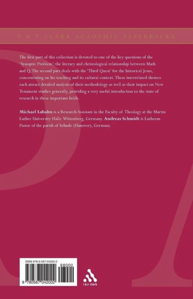 The first part of this collection is devoted to one of the key questions of the 'Synoptic Problem': the literary and christological relationship between Mark and Q. The second part deals with the 'Third Quest' for the historical Jesus, concentrating on his teaching and its cultural context. These interrelated themes each attract detailed analysis of their methodology as well as their impact on New Testament studies generally, providing a very useful introduction to the state of research in these important fields.