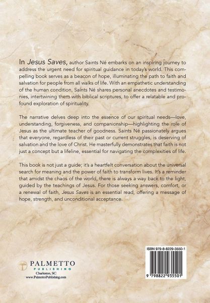 Embark on a Transformative Spiritual Journey: Embrace Faith, Seek Salvation, and Discover the Unconditional Love of Christ at any Age. In a world where spiritual guidance is sought after more than ever, Jesus Saves: Coming Soon emerges as a beacon of hope and enlightenment for those traversing the varied stages of life. From the curious minds in their mature years to those in the golden years of 65 - 80 and beyond, this book invites readers from all back grounds to explore the teachings of Jesus Christ. Jesus Saves: Coming Soon is not just a book; it's an experience that transcends age, profession, and education. It's for those who yearn for a deeper understanding of faith, those seeking answers to life's pressing questions, and anyone curious about the path to salvation. The author, Saints Né, brings a unique perspective, blending personal testimonies with biblical scriptures, making the teachings of Jesus accessible and relatable to everyone. This book reaches out to the hearts of readers, offering a message of hope and forgiveness, and the possibility of a renewed life in faith. It addresses the common challenges faced at different life stages, providing wisdom and comfort. Whether you're just beginning to explore your spirituality or seeking to deepen your existing faith, Jesus Saves: Coming Soon is a guiding light, leading you towards a path of spiritual fulfillment. Saints Né's compassionate and empathetic narrative assures readers that it's never too late to seek salvation and embrace the love of Christ. The book stands as an invitation to journey through life with faith as your compass, encouraging readers to discover the peace and strength that come with a personal relationship with Jesus. If you're in search of a simple yet profound conversation about faith, or if you're looking to answer the spiritual questions that have long lingered in your mind, Jesus Saves is the companion you need. It's a testament to the fact that no matter your journey so far, the doors to understanding and embracing Christ's teachings are always open.