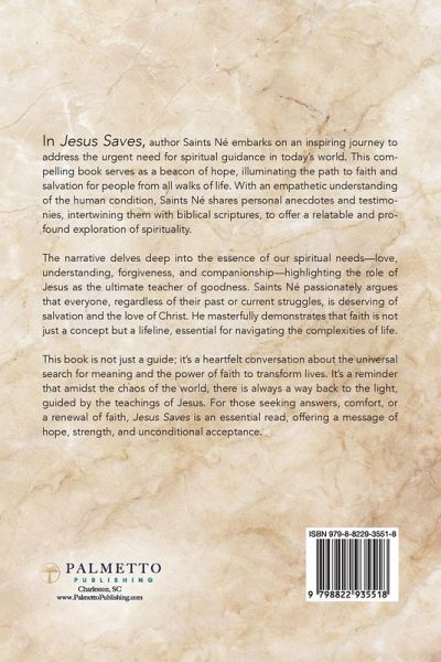 Embark on a Transformative Spiritual Journey: Embrace Faith, Seek Salvation, and Discover the Unconditional Love of Christ at any Age. In a world where spiritual guidance is sought after more than ever, Jesus Saves: Coming Soon emerges as a beacon of hope and enlightenment for those traversing the varied stages of life. From the curious minds in their mature years to those in the golden years of 65 - 80 and beyond, this book invites readers from all back grounds to explore the teachings of Jesus Christ. Jesus Saves: Coming Soon is not just a book; it's an experience that transcends age, profession, and education. It's for those who yearn for a deeper understanding of faith, those seeking answers to life's pressing questions, and anyone curious about the path to salvation. The author, Saints Né, brings a unique perspective, blending personal testimonies with biblical scriptures, making the teachings of Jesus accessible and relatable to everyone. This book reaches out to the hearts of readers, offering a message of hope and forgiveness, and the possibility of a renewed life in faith. It addresses the common challenges faced at different life stages, providing wisdom and comfort. Whether you're just beginning to explore your spirituality or seeking to deepen your existing faith, Jesus Saves: Coming Soon is a guiding light, leading you towards a path of spiritual fulfillment. Saints Né's compassionate and empathetic narrative assures readers that it's never too late to seek salvation and embrace the love of Christ. The book stands as an invitation to journey through life with faith as your compass, encouraging readers to discover the peace and strength that come with a personal relationship with Jesus. If you're in search of a simple yet profound conversation about faith, or if you're looking to answer the spiritual questions that have long lingered in your mind, Jesus Saves is the companion you need. It's a testament to the fact that no matter your journey so far, the doors to understanding and embracing Christ's teachings are always open.