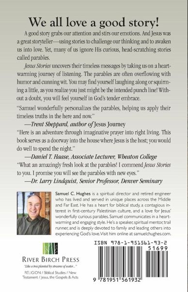 We all love a good story! A good story grabs our attention and stirs our emotions. And Jesus was a great storyteller-using stories to challenge our thinking and to awaken us into love. Yet, many of us ignore His curious, head-scratching stories called parables. Jesus Stories uncovers their timeless messages by taking us on a heartwarming journey of listening. The parables are often overflowing with humor and cunning wit. You may find yourself laughing along or squirming a little, as you realize you just might be the intended punch line! Without a doubt, you will feel yourself in God's tender embrace. "Samuel wonderfully personalizes the parables, helping us apply their timeless truths in the here and now." --Trent Sheppard, author of Jesus Journey "Here is an adventure through imaginative prayer into right living. This book serves as a doorway into the house where Jesus is the host; you would do well to spend the night." --Daniel T. Haase, Associate Lecturer, Wheaton College "What an amazingly fresh look at the parables! I commend Jesus Stories to you. I promise you will see the parables with new eyes." --Dr. Larry Lindquist, Senior Professor, Denver Seminary
