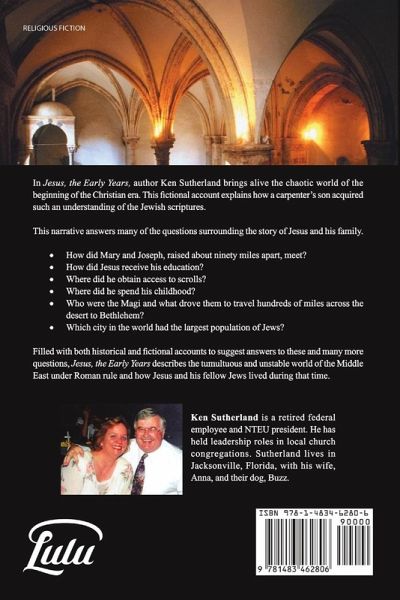 In Jesus, the Early Years, author Ken Sutherland brings alive the chaotic world of the beginning of the Christian era. This fictional account explains how a carpenter's son acquired such an understanding of the Jewish scriptures. This narrative answers many of the questions surrounding the story of Jesus and his family. How did Mary and Joseph, raised about ninety miles apart, meet? How did Jesus receive his education? Where did he obtain access to scrolls? Where did he spend his childhood? Who were the Magi and what drove them to travel hundreds of miles across the desert to Bethlehem? Which city in the world had the largest population of Jews? Filled with both historical and fictional accounts to suggest answers to these and many more questions, Jesus, the Early Years describes the tumultuous and unstable world of the Middle East under Roman rule and how Jesus and his fellow Jews lived during that time.
