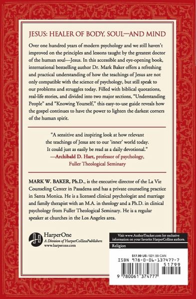 Jesus: Healer of Body, Soul--and Mind Over one hundred years of modern psychology and we still haven't improved on the principles and lessons taught by the greatest doctor of the human soul--Jesus. In this accessible and eye-opening book, international bestselling author Dr. Mark Baker offers a refreshing and practical understanding of how the teachings of Jesus are not only compatible with the science of psychology, but still speak to our problems and struggles today. Filled with biblical quotations, real-life stories, and divided into two major sections, "Understanding People" and "Knowing Yourself," this easy-to-use guide reveals how the gospel continues to have the power to lighten the darkest corners of the human spirit.