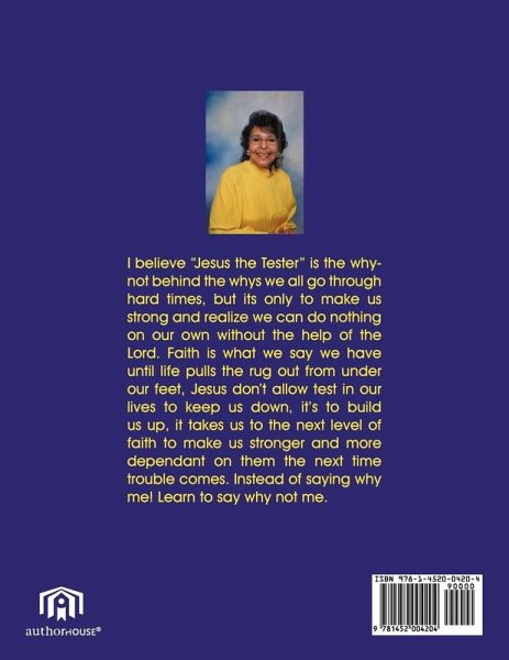 I believe "Jesus the Tester" is the why-not behind the whys we all go through hard times, but its only to make us strong and realize we can do nothing on our own without the help of the Lord. Faith is what we say we have until life pulls the rug out from under our feet, Jesus don't allow test in our lives to keep us down, it's to build us up, it takes us to the next level of faith to make us stronger and more dependant on them the next time trouble comes. Instead of saying why me! Learn to say why not me.