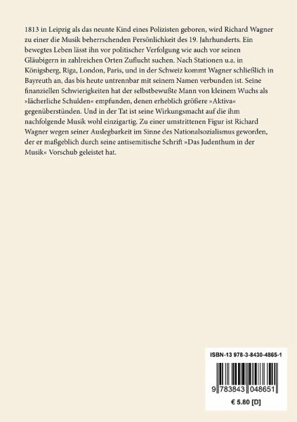 Richard Wagner: Jesus von Nazareth. Ein dichterischer Entwurf Entstanden 1848. Hier nach: Richard Wagner: Sämtliche Schriften und Dichtungen. Band 11, Leipzig: Breitkopf und Härtel, o.J. [1911]. Die Eigentümlichkeit der Orthographie wurde bei der vorliegenden Ausgabe beibehalten. Vollständige Neuausgabe. Herausgegeben von Karl-Maria Guth. Berlin 2015. Umschlaggestaltung von Thomas Schultz-Overhage. Gesetzt aus Minion Pro, 11 pt. Über den Autor: 1813 in Leipzig als das neunte Kind eines Polizisten geboren, wird Richard Wagner zu einer die Musik beherrschenden Persönlichkeit des 19. Jahrhunderts. Ein bewegtes Leben lässt ihn vor politischer Verfolgung wie auch vor seinen Gläubigern in zahlreichen Orten Zuflucht suchen. Nach Stationen u.a. in Königsberg, Riga, London, Paris, und in der Schweiz kommt Wagner schließlich in Bayreuth an, das bis heute untrennbar mit seinem Namen verbunden ist. Seine finanziellen Schwierigkeiten hat der selbstbewußte Mann von kleinem Wuchs als »lächerliche Schulden« empfunden, denen erheblich größere »Aktiva« gegenüberstünden. Und in der Tat ist seine Wirkungsmacht auf die ihm nachfolgende Musik wohl einzigartig. Zu einer umstrittenen Figur ist Richard Wagner wegen seiner Auslegbarkeit im Sinne des Nationalsozialismus geworden, der er maßgeblich durch seine antisemitische Schrift »Das Judenthum in der Musik« Vorschub geleistet hat.