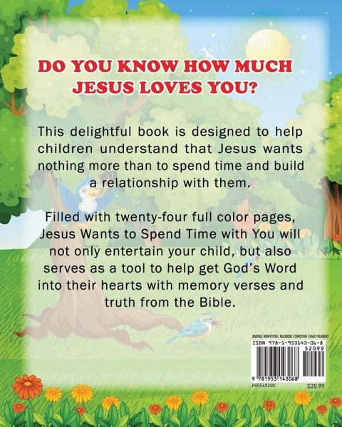 This book was designed to help children understand that Jesus wants nothing more than to spend time with them and build a relationship. It's so they know everything that God and Jesus did was just so that He could have a relationship with them. It's to help with children's mental health as well, teaching them they can always know they are wanted. Also includes Scripture memory verses that were the basis on which the book was written.