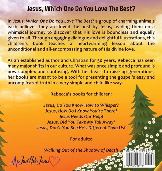 In Jesus, Which On Do You Love The Best? a group of charming animals each believes they are loved the best by Jesus, leading them on a whimsical journey to discover that His love is boundless and equally given to all. Through engaging dialogue and delightful illustrations, this children's book teaches a heartwarming lesson about the unconditional and all-encompassing nature of His divine love.