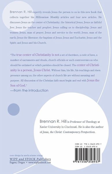 Brennan R. Hill expertly reveals Jesus the person to us in this new book that collects together his Millennium Monthly articles and four new articles. He discusses Jesus as the center of Christianity; the historical Jesus; Jesus as faithful Jew; Jesus the teacher and prophet; Jesus calling us to discipleship; Jesus and women; Jesus, man of prayer; Jesus and service to the world; Jesus, man of the earth; Jesus the liberator; the baptism of Jesus; Jesus and Eucharist; Jesus and the Spirit; and Jesus and his Church.