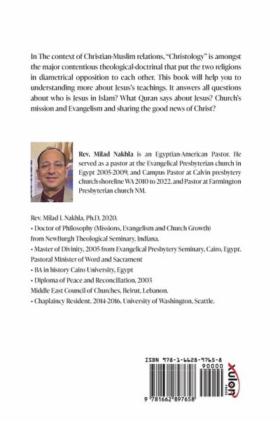 In The context of Christian-Muslim relations, "Christology" is amongst the major contentious theological-doctrinal that put the two religions in diametrical opposition to each other. This book will help you to understanding more about Jesus's teachings. It answers all questions about who is Jesus in Islam? What Quran says about Jesus? Church's mission and Evangelism and sharing the good news of Christ? Rev. Milad Nakhla is an Egyptian-American Pastor. He served as a pastor at the Evangelical Presbyterian church in Egypt 2005-2009, and Campus Pastor at Calvin presbytery church shoreline WA 2010 to 2022, and Pastor at Farmington Presbyterian church NM. Rev. Milad I. Nakhla, Ph.D, 2020. - Doctor of Philosophy (Missions, Evangelism and Church Growth) from NewBurgh Theological Seminary, Indiana. - Master of Divinity, 2005 from Evangelical Presbytery Seminary, Cairo, Egypt. Pastoral Minister of Word and Sacrament - BA in history Cairo University, Egypt - Diploma of Peace and Reconciliation, 2003 Middle East Council of Churches, Beirut, Lebanon. - Chaplaincy Resident, 2014-2016, University of Washington, Seattle.