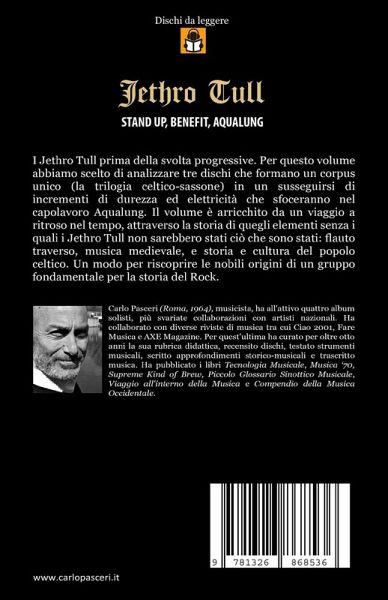 I Jethro Tull prima della svolta progressive. Per questo volume abbiamo scelto di analizzare tre dischi che formano un corpus unico (la trilogia celtico-sassone) in un susseguirsi di incrementi di durezza ed elettricità che sfoceranno nel capolavoro Aqualung. I Jethro Tull sono uno dei pochissimi gruppi rock le cui sorti sono indissolubilmente legate a quelle del proprio capo, Ian Anderson, che nel corso degli anni si è dimostrato un timoniere di grande qualità ed esperienza conducendo la nave JT in maniera impeccabile: nella loro quarantennale storia discografica non si riscontrano dischi di scarsa qualità o passi falsi. In appendice infine ci allontaniamo dal Rock e ripercorriamo, in un viaggio a ritroso nel tempo, la storia di quegli elementi senza i quali i Jethro Tull non sarebbero stati ciò che sono stati: flauto traverso, musica medievale, e storia e cultura del popolo celtico. Un modo per riscoprire le nobili origini di un gruppo fondamentale per la storia del Rock.