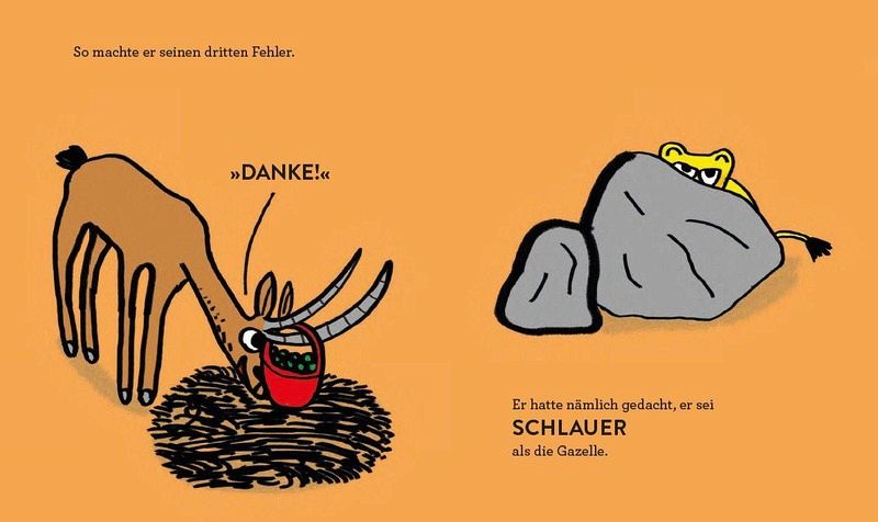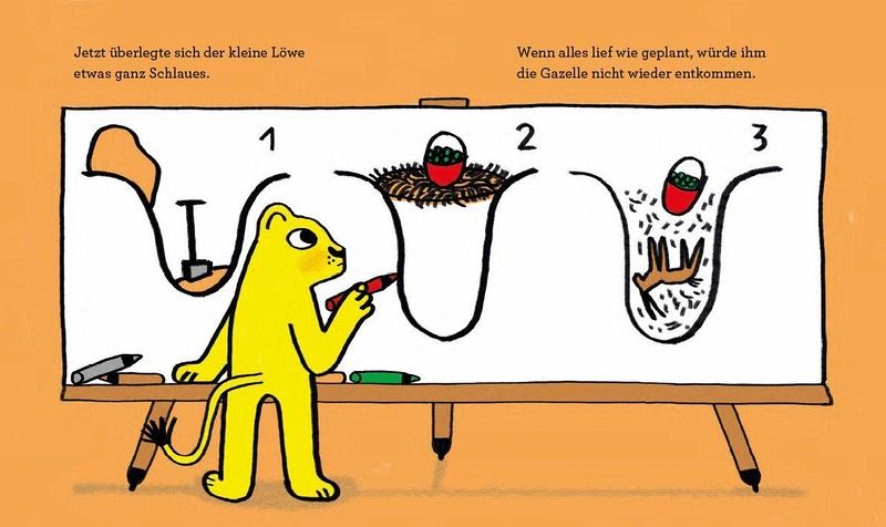 Papa Löwe findet, sein kleiner Löwe solle nun endlich seine erste Gazelle fangen. Doch der Weg dahin ist beschwerlich. Der kleine Löwe macht einen Fehler nach dem anderen: Viel zu selbstsicher geht er es beim ersten Mal an - und scheitert. Beim zweiten Mal ist er nicht schnell, beim dritten Mal nicht schlau genug. Nicht einmal, wenn er »Bitte« sagt, kommt er weiter und muss sogar aushalten, dass sich eine ganze Gazellenherde über ihn amüsiert. Wie es dem kleinen Löwen schließlich doch gelingt, die Gazelle zu fangen und in sein Versteck zu schleppen, ist überraschend - aber noch viel überraschender ist, was er dann zu ihr sagt: Jetzt musst du mich fangen! Alleine die ersten Schritte im Leben gehen - im Selbstverständnis von Kindern scheint dies ein Klacks. Dass zu Selbstvertrauen auch allmähliches Lernen und Erfahrung gehören, zeigt dieses Bilderbuch äußerst humorvoll.