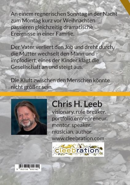 An einem regnerischen Sonntag in der Nacht zum Montag kurz vor Weihnachten passieren gleichzeitig dramatische Ereignisse in einer Familie. Der Vater verliert den Job und dreht durch, die Mutter wechselt den Mann und implodiert, eines der Kinder klagt die Gesellschaft an und steigt aus.Die Kluft zwischen den Menschen könnte nicht größer sein.