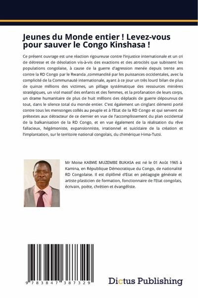 Ce présent ouvrage est une réaction rigoureuse contre l'injustice internationale et un cri de détresse et de désolation vis-à-vis des exactions et des atrocités que subissent les populations congolaise, à cause de la guerre d'agression menée depuis trente ans contre la RD Congo par le Rwanda ,commandité par les puissances occidentales, avec la complicité de la Communauté internationale, ayant à ce jour un très lourd bilan de plus de quinze millions des victimes, un pillage systématique des ressources minières stratégiques, un viol massif des enfants et des femmes, et la profanation de leurs corps, un drame humanitaire de plus de huit millions des déplacés de guerre dépourvus de tout, dans le silence total du monde entier. C'est également un cinglant démenti porté contre tous les mensonges collés au peuple et à l'Etat de la RD Congo et qui servent de prétextes aux détracteur de ce dernier en vue de l'accomplissement du plan occidental de la balkanisation de la RD Congo, et en vue également de la réalisation du rêve fallacieux, hégémoniste, expansionniste, irrationnel et suicidaire de la création et l'implantation, sur le territoire national congolais, du chimérique Hima-Tutsi.