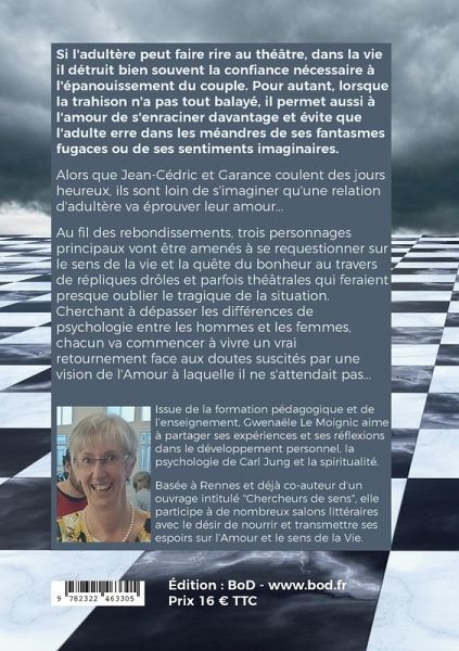 Une femme drague un homme,Il succombe à ses charmes,Son épouse s'effondre,Mais entre rires et pleurs,L'amour reste vainqueur...QQCOQP !?!Alors que Jean-Cédric et Garance coulent des jours heureux, ils sont loin de s'imaginer qu'une relation d'adultère va éprouver leur amour...Au fil des rebondissements, trois personnages principaux vont être amenés à se requestionner sur le sens de la vie, la quête du bonheur et la trahison ainsi que sur leur perception de l'Amour absolu au travers de répliques drôles et parfois théâtrales qui feraient presque oublier le tragique de la situation.Cherchant à…mehr