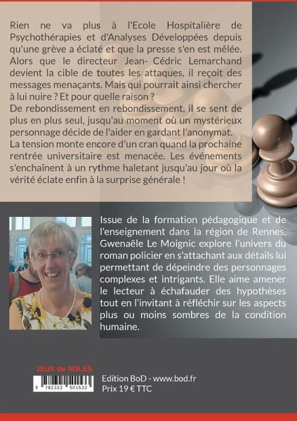 Rien ne va plus à l'Ecole Hospitalière de Psychothérapies et d'Analyses Développées depuis qu'une grève a éclaté et que la presse s'en est mêlée. Alors que le directeur Jean-Cédric Lemarchand devient la cible de toutes les attaques, il reçoit des messages menaçants. Mais qui pourrait ainsi chercher à lui nuire ? Et pour quelle raison ?De rebondissement en rebondissement, il se sent de plus en plus seul, jusqu'au moment où un mystérieux personnage décide de l'aider tout en gardant l'anonymat.La tension monte encore d'un cran quand la prochaine rentrée universitaire est menacée. Les événements s'enchaînent à un rythme haletant jusqu'au jour où la vérité éclate enfin à la surprise générale !