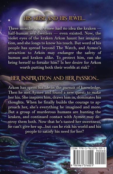 HIS MUSE AND HIS JEWEL... Three months ago, Aymee had no idea the kraken - half-human sea dwellers - even existed. Now, the violet eyes of the kraken Arkon haunt her imagination, and she longs to know his touch. But word of his people has spread beyond The Watch, and Aymee's attraction to Arkon may endanger the safety of human and kraken alike. To protect him, can she bring herself to forsake him? Is her desire for Arkon worth putting both their worlds at risk? HER INSPIRATION AND HER PASSION... Arkon has spent his life in the pursuit of knowledge. Then he met Aymee and found a new quest: to make her his. She inspires him, draws him in, dominates his thoughts. When he finally builds the courage to approach her, she's everything he imagined and more. But a group of murderous humans are hunting the kraken, and continued contact with Aymee may destroy them both. Now that he's tasted her sweetness, he can't give her up...but can he risk his world and his people to satisfy his need for her?