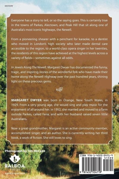 Everyone has a story to tell, or so the saying goes. This is certainly true in the towns of Parkes, Alectown, and Peak Hill that sit along one of Australia's most iconic highways, the Newell. From a pioneering shearer with a penchant for karaoke, to a dentist who moved in London's high society and made dental care available to all in the area, or a world-class opera singer in her twenties, the residents of this region have achieved at the highest levels across a variety of fields-sometimes against all odds. In Jewells along the Newell, Margaret Dwyer has documented the funny, tragic, and inspiring stories of the wonderful folk who have made their home along the Newell Highway over the past hundred years, shining light on these precious gems.