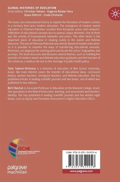 This book uses transnational history to explain the formation of modern schools in a territory that lacks modern education. The emergence of modern Jewish education in Ottoman Palestine resulted from European actors and networks' infiltration of educational concepts due to several unique elements. One of them was the activity of transnational networks and actors. The other factor is the important place of education in shaping reality in the Jewish and Hebrew discourse. The area of Ottoman Palestine was almost devoid of modern education, so it is possible to examine the ways of transferring educational concepts. Historians can diagnose the starting point and locate the actors' biographies and journeys. The book discusses and discovers several themes, such as molding five portraits of modern Jewish and Hebrew education graduates and the function of the school as a medical site due to the shortage of public health policy.
