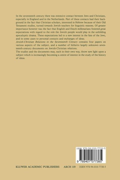 This volume contains a number of studies on Jewish-Christian re lations, in which special attention is given to the Netherlands and England, and the texts of some recently discovered and other rare documents in the same field. The work originates in a symposium on this subject held on 23 January 1985 at the University of Leiden under the auspices of the Sir Thomas Browne Institute for the study of Anglo-Dutch relations. Various authors have contributed to this volume. Each author is responsible for his own contribu tion; thus, in cases of discrepancies in interpretation, orthography or method of transcription we have made no attempt at harmoni zation. We thank all those who have made publication possible. The Stichting Dr Hendrik Muller's Vaderlandsch Fonds gave a gener ous grant in defrayal of the cost of printing, and the Ir. F.E.D. Enschede-Stichting kindly covered the additional expenses re sulting from the translation and editing of some of the contribu tions. Last but not least we should like to thank Prof. R.H. Pop kin for his stimulating interest in the publication of this volume.