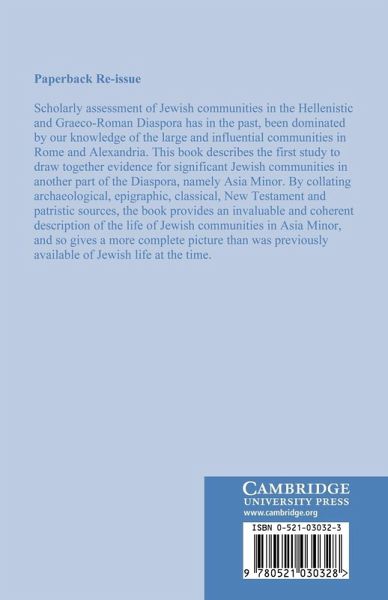 Scholarly assessment of Jewish communities in the Hellenistic and Graeco-Roman Diaspora has, in the past, been dominated by our knowledge of the large and influential communities in Rome and Alexandria. This book brings together the evidence for significant Jewish communities in another part of the Diaspora, namely Asia Minor. By collating archaeological, epigraphic, classical, New Testament and patristic sources, the book provides an invaluable and coherent description of the life of Jewish communities in Asia Minor, and so gives a more complete picture than was previously available of Jewish life at the time. By describing the strength, vitality and diversity of Jewish life in Asia Minor, the author is able to point to the retention of their Jewish identity by these communities, despite their close relations with the wider pagan society in which they lived. A degree of integration did not, therefore, mean the abandonment of an active attachment to Jewish tradition. The survey the book provides thus contributes to our understanding of the New Testament and of early Christianity.