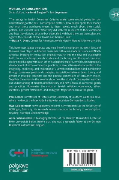 1. Jews, Consumer Culture, and Jewish Consumer Cultures - An Introduction by Uwe Spiekermann, Paul Lerner, and Anne Schenderlein.- 2. Beyond the Bright Side of Consumer Culture: Jewish Peddlers and Second-Hand Dealers in Germany, 1800-1938 by Uwe Spiekermann.- 3. Advertising in the German-Zionist Press in the First Decades of the Twentieth Century: A Case Study by Olivier Baisez.- 4. Consuming Temples on Both Sides of the Atlantic: German-speaking Jews from the Department Store to the Mall by Paul Lerner.- 5. Stanley Marcus: Fashioning A City by Nils Roemer.- Part II Jewish Consumer Cultures.- 6. Buy Me a Mink: Jews, Fur, and Conspicuous Consumption by Kerry Wallach.- 7. Mrs. Blumenthal Builds Her Dream House: Jewish Women and Consumer Culture in Postwar American Suburbs by Aleisa Fishman.- 8. The Jewish Consumer Culture of British Mandate Palestine by Hizky Shoham.- Part III Jewish Questions, German Questions, and the Politics and Meaning of Consumption in the Modern World.- 9. American Jewish Boycotts of Germany before and after the Holocaust by Anne Schenderlein.- 10. The Art Market in Photography: Modernity, Jews, and Wiedergutmachung? By Michael Berkowitz.- 11. Does Consumer Culture Matter? The "Jewish Question" and the Changing Regimes of Consumption by Gideon Reuveni.