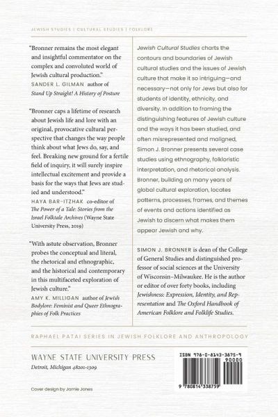 Jewish Cultural Studies charts the contours and boundaries of Jewish cultural studies and the issues of Jewish culture that make it so intriguing-and necessary-not only for Jews but also for students of identity, ethnicity, and diversity generally. In addition to framing the distinguishing features of Jewish culture and the ways it has been studied, and often misrepresented and maligned, Simon J. Bronner presents several case studies using ethnography, folkloristic interpretation, and rhetorical analysis. Bronner, building on many years of global cultural exploration, locates patterns, processes, frames, and themes of events and actions identified as Jewish to discern what makes them appear Jewish and why. Jewish Cultural Studies is divided into three parts. Part 1 deals with the conceptualization of how Jews in complex, heterogenous societies identify themselves as a cultural group to non-Jews and vice versa-such as how the Jewish home is socially and materially constructed. Part 2 delves into ritualization as a strategic Jewish practice for perpetuating peoplehood and the values that it suggests-for example, the rising popularity of naming ceremonies for newborn girls, simhat bat or zeved habat, in the twenty-first century. Part 3 explores narration, including the global transformation of Jewish joking in online settings and the role of Jews in American political culture. Bronner reflects that a reason to separate Jewish cultural studies from the fields of Jewish studies and cultural studies is the distinctiveness of Jewish culture among other ethnic experiences. As a diasporic group with religious ties and varying local customs, Jews present difficulties of categorization. He encourages a multiperspectival approach that considers the Jewish double consciousness as being aware of both insider and outsider perspectives, participation in ancient tradition and recent modernization, and the great variety and stigmatization of Jewish experience and cultural expression. Students and scholars in Jewish studies, cultural studies, ethnic-religious studies, folklore, sociology, psychology, and ethnology are the intended audience for this book.