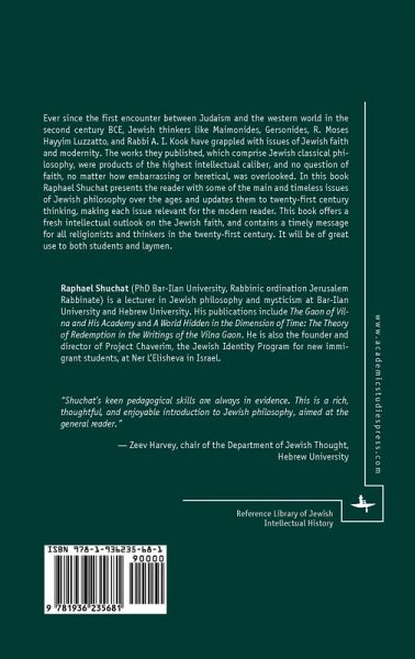 Ever since the first encounter between Judaism and the western world in the second century BCE, Jewish thinkers like Maimonides, Gersonides, R. Moses Hayyim Luzzatto, and Rabbi A. I. Kook have grappled with issues of Jewish faith and modernity. The works they published, which comprise Jewish classical philosophy, were products of the highest intellectual caliber, and no question of faith, no matter how embarrassing or heretical, was overlooked. In this book Raphael Shuchat presents the reader with some of the main and timeless issues of Jewish philosophy over the ages and updates them to twenty-first century thinking, making each issue relevant for the modern reader. This book offers a fresh intellectual outlook on the Jewish faith, and contains a timely message for all religionists and thinkers in the twenty-first century. It will be of great use to both students and laymen.