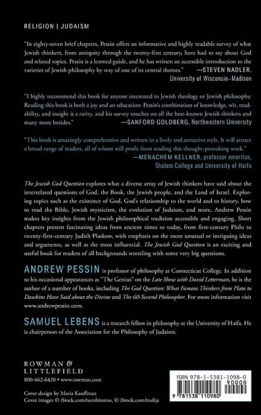 The Jewish God Question explores what a diverse array of Jewish thinkers have said about the interrelated questions of God, the Book, the Jewish people, and the Land of Israel. Exploring topics such as the existence of God, God's relationship to the world and to history, how to read the Bible, Jewish mysticism, the evolution of Judaism, and more, Andrew Pessin makes key insights from the Jewish philosophical tradition accessible and engaging. Short chapters share fascinating insights from ancient times to today, from Philo to Jewish Plaskow. The book emphasizes the more unusual or intriguing ideas and arguments, as well as the most influential. Pessin introduces readers to key themes and thinkers and shares suggestions for further reading. The Jewish God Question is an exciting and useful book for readers wrestling with some very big questions.